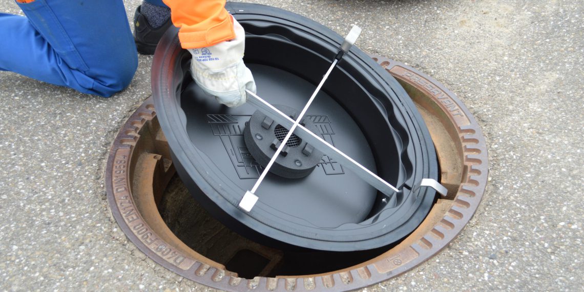 Starkregen und andere Großereignisse können das kommunale Abwassersystem schnell überfordern. Zum Schutz vor den kostspieligen Folgen haben sich Gullyeinsätze bewährt, die den Wassereintrag von der Straße begrenzen. Das System Aquastop von Coalsi ist besonders einfach zu handhaben. Es wird anstelle des Schmutzfangs in den Schachtdeckel eingesetzt. So ist es im Handumdrehen einsatzbereit — und eignet sich damit auch zur temporären Bestückung einzelner Schächte bei drohender Überlastung. Verwendbar sind die Einsätze für alle gängigen Misch- und Trennsysteme sowie unterirdische Anlagen, in die kein oder nur kontrolliert Wasser eindringen soll.