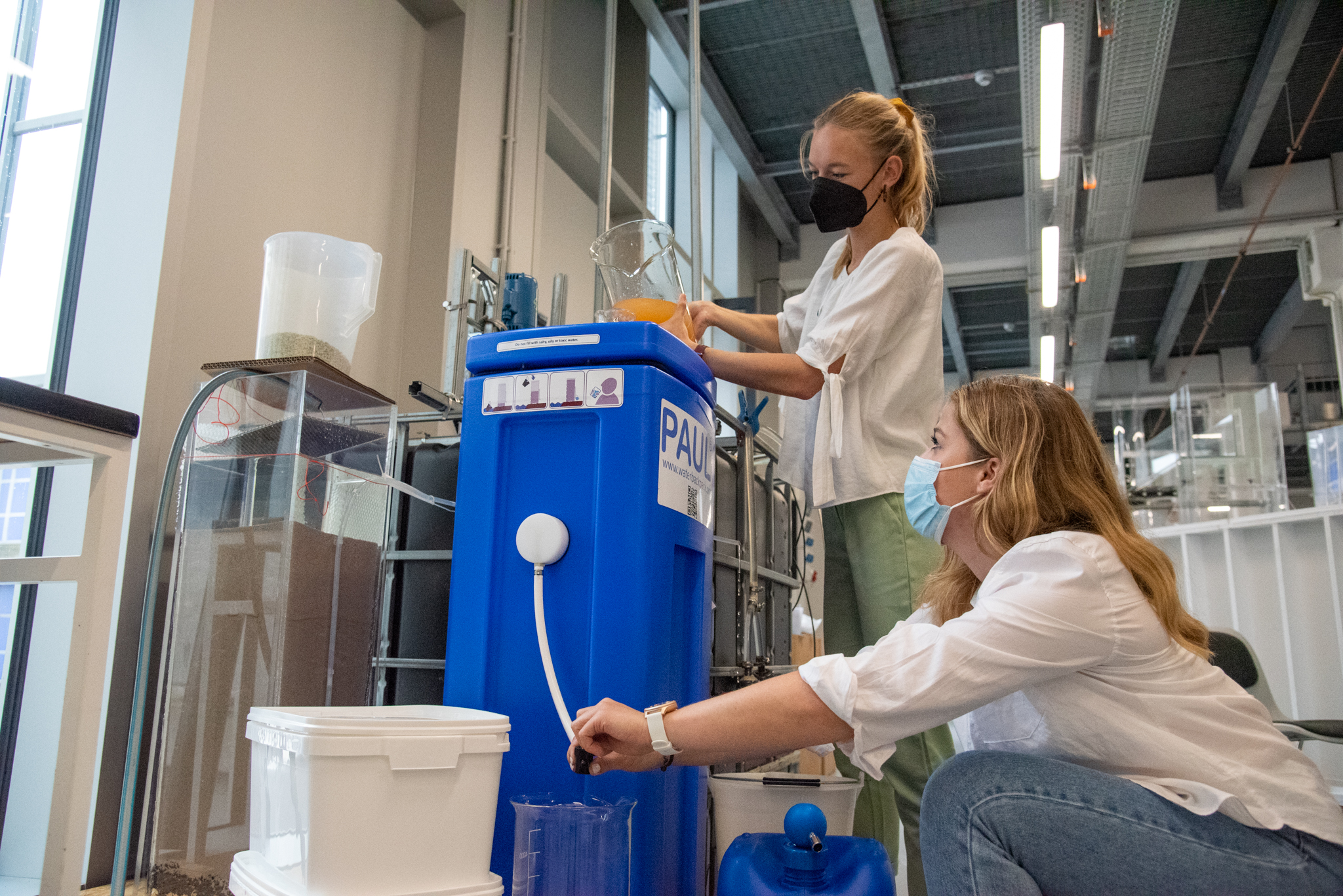 Ramona Hinz und Dörthe Sievers haben für ihre Masterarbeit viel Zeit im Labor verbracht. Im Technikum für Stadthydrologie und Wasserversorgung haben sie auf dem Steinfurter Campus der FH Münster mobile Systeme zur dezentralen Trinkwasseraufbereitung untersucht und geprüft, wo und in welcher Situation sie am besten geeignet sind. Inzwischen sind sie wissenschaftliche Mitarbeiterinnen der Hochschule und haben die Produkte unter realen Bedingungen angewandt: Von Anfang Februar bis Mitte März haben sie die Systeme in Uganda getestet, den Menschen vor Ort gezeigt, wie sie funktionieren und erklärt, welche gesundheitlichen Gefahren von verunreinigtem Wasser ausgehen können.