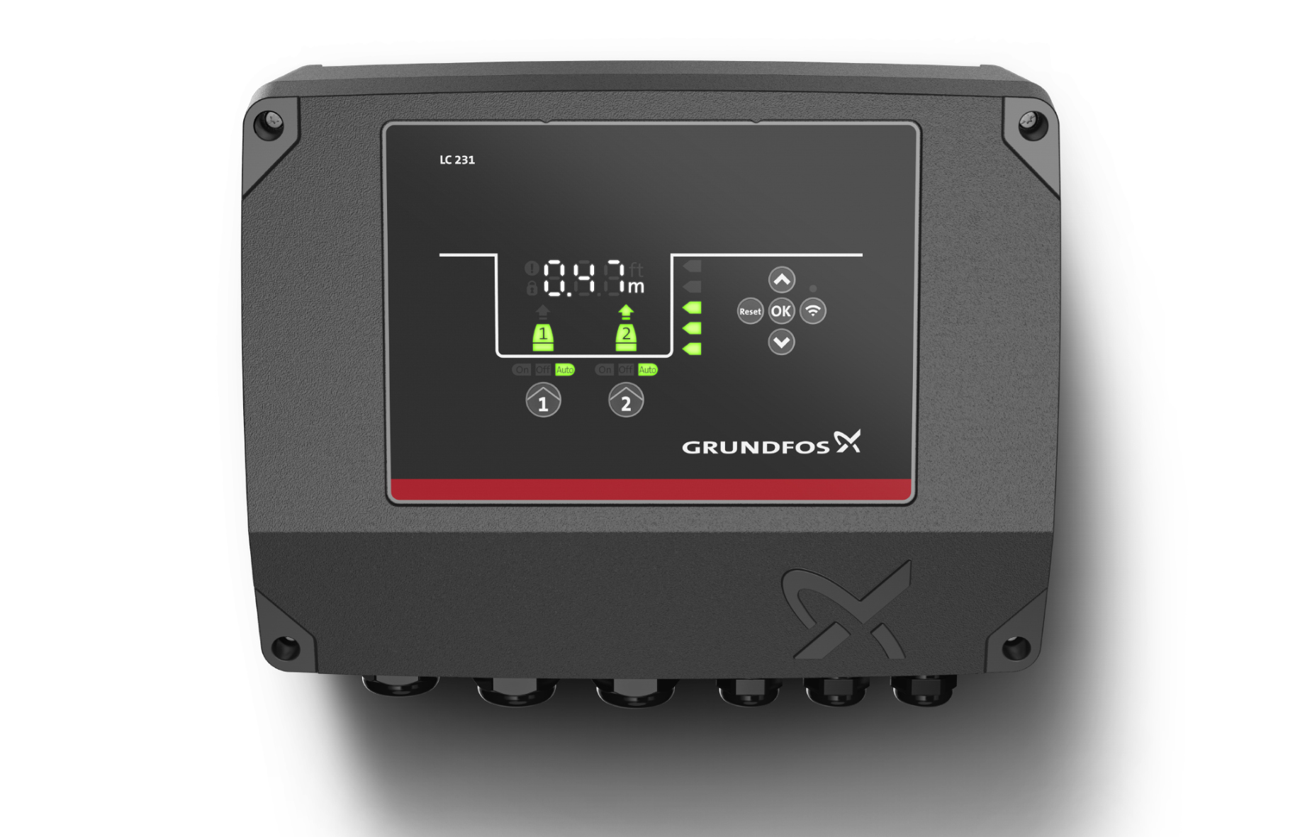 Die Niveausteuerungen des Typs LC hat Grundfos für Anlagen mit einer oder zwei Pumpen entwickelt (LC 231: eine kompakte Lösung mit zertifiziertem Motorschutz; LC 241: eine Lösung für den Schaltschrank mit Modulen und Anpassungsmöglichkeiten). Sie wurden speziell für das Management kleinerer Wassermengen konzipiert, insbesondere um das Befüllen und Entleeren von/aus Behältern bzw. Abwasserschächten zu steuern. Mit vordefinierten Einstellungen geht die Steuerung einfach und schnell in Betrieb und lässt sich rasch an unterschiedliche Einsatzbereiche anpassen; sie unterstützt bis zu fünf Steuerebenen für den Betrieb von analogen Niveausensoren oder Schwimmerschaltern. Die Steuerung verfügt zudem über mehrere freie Ein- und Ausgänge für zusätzliche Sensoren (um beispielsweise den Ausgangsdruck der Pumpe zu messen).