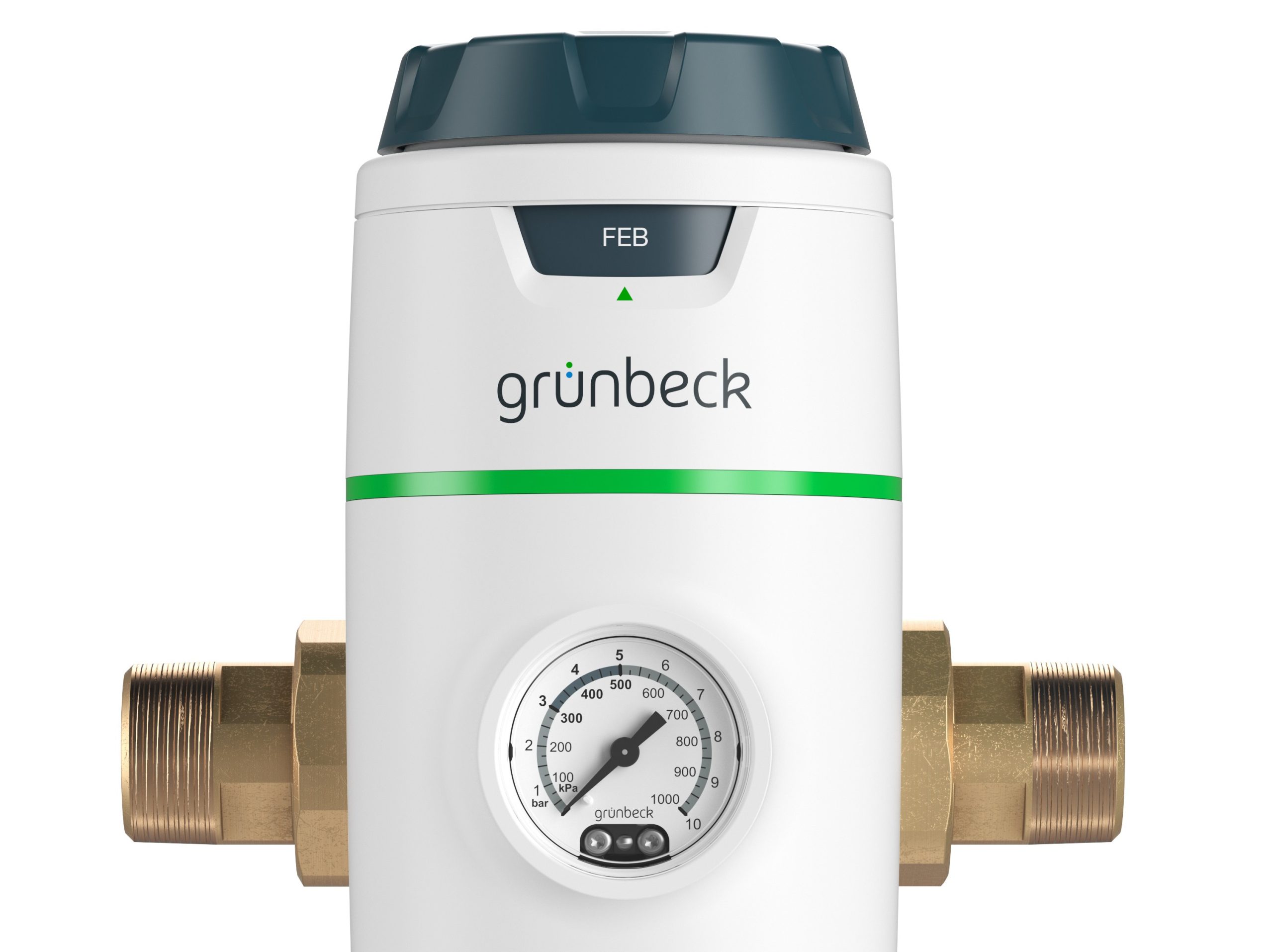 Das kompakte, schlanke Filtergehäuse zeigt sich entsprechend der aktuellen Grünbeck-Designphilosophie in einer zeitlosen, sanft organischen Form. Das Filterelement verbirgt sich hinter einer geschlossenen Gehäuseoberfläche und ist damit vor UV-Licht geschützt. Über ein schmales Sichtfenster lässt sich der Zustand des Filtergewebes optisch beurteilen. Zur Auswahl steht die pureliQ-Filterbaureihe in den Dimensionen DN 20 bis DN 32 als Wechselfilter und Rückspülfilter sowie jeweils auch in Kombination mit einem integrierten Druckminderer.