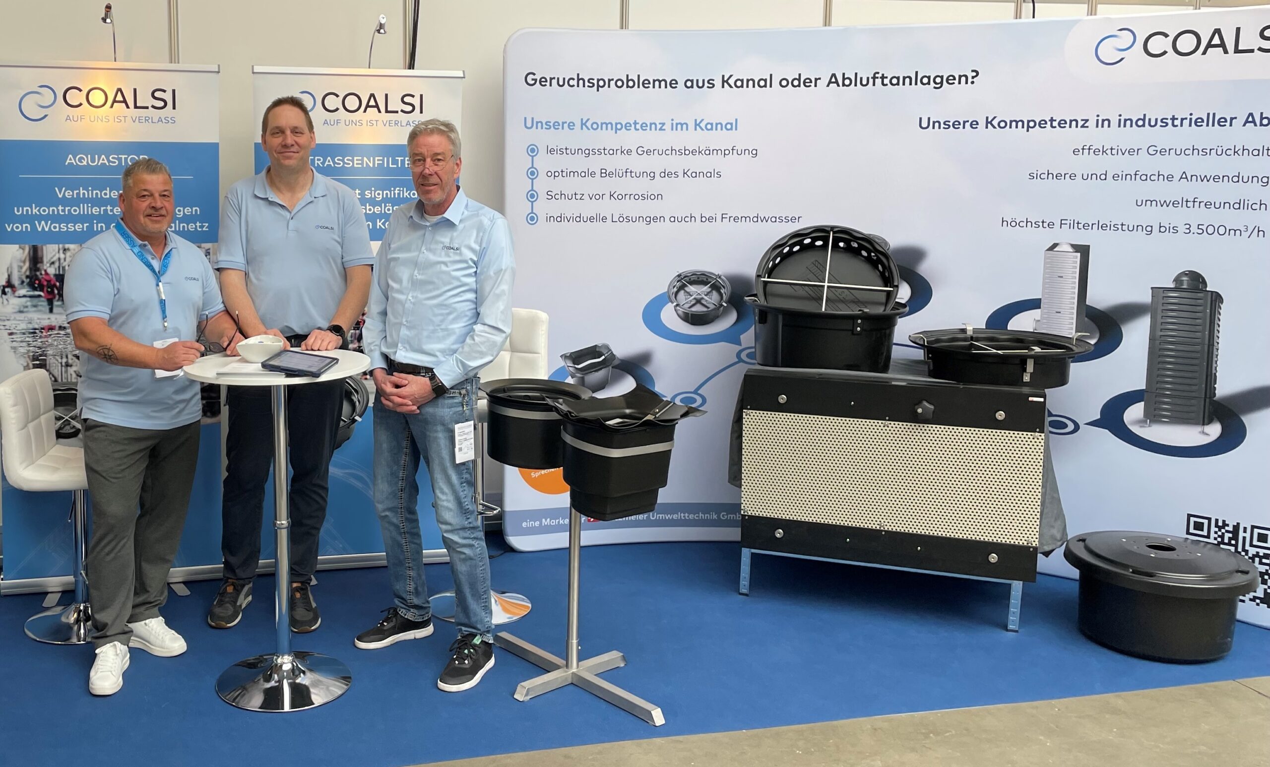 Coalsi ist auf Geruchsprobleme aus Kanälen und Abluftanlagen spezialisiert. Die Vorstellung kam zur richtigen Zeit: Mit den steigenden Temperaturen im Frühjahr erwarten viele Kommunen wieder Beschwerden von Bürger:innen wegen unangenehmer Gerüche aus dem Kanalnetz. Diese entstehen durch organische Stoffe im Abwasser, wenn Wärme hinzukommt. Typische Geruchsstoffe sind dabei Schwefelwasserstoff und Ammoniak. Gegen sie geht Coalsi mit seinen Hybridfiltern vor. Sie filtern das Rohgas dreifach und neutralisieren so bis zu 95 Prozent der wahrnehmbaren Stoffe.