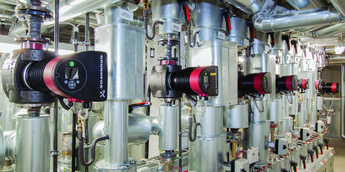 Für die Produktion der Magna3 hat das Unternehmen in Wahlstedt rund 40 Millionen Euro investiert. Die Fertigung basiert auf einem Produktions- und Logistik-Konzept mit durchgängig halb- oder vollautomatisierten Prozessen. Die Montagelinien werden über ein Warehouse-Management mit Staplerleitsystem ‘just in sequence’ direkt aus dem zentralen Lager mit Komponenten versorgt. Auch das Zusammenführen von Pumpengehäuse und Motor mit Laufeinheit erfolgt vollautomatisiert. Bei den Komponenten setzt Grundfos auf eine hohe Fertigungs¬tiefe und produziert beispielsweise Leiterplatten und Wellen selbst. Die Qualitätssicherung arbeitet nach dem japanischen Poka-Yoke-Prinzip. Danach werden bereits im Fertigungsprozess einzelne Teile überprüft, um Fehler frühzeitig erkennen und korrigieren zu können. Dem Thema Energieeffizienz räumt Grundfos auch in der eigenen Produktion hohen Stellenwert ein: Durch den Einsatz einer Staurollenkette spart die Magna3-Fertigungslinie im Vergleich zu herkömmlichen Transportbändern rund 40 Prozent Energie ein.