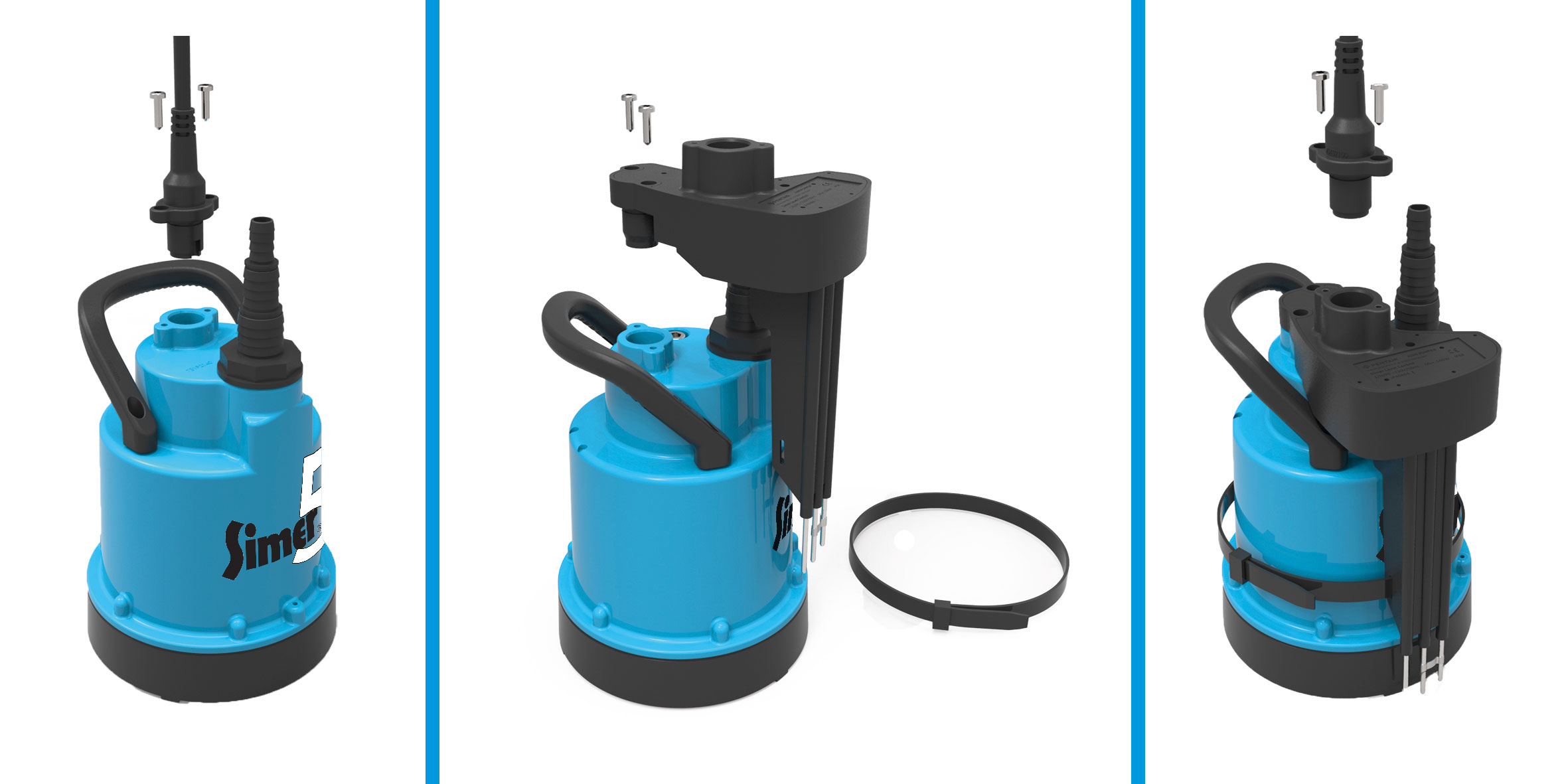 Die neue SIMER 5 ist eine flach absaugende Pumpe und entsorgt schnell und unkom­pliziert Wasserpfützen aus Kellern oder Wasser­ansamm­lun­gen von Däch­ern, Ten­nis­plätzen, Ter­rassen oder son­sti­gen Flächen. Die neueste Über­ar­beitung hat sich äußer­lich nur wenig verän­dert, dafür ist sie im Inneren kom­plett erneuert wor­den. Das neue Zube­hör SIMER LEVEL CONTROL ermöglicht nun auch den automa­tis­chen Betrieb der Pumpe, wenn Wass­er am Boden detek­tiert wird.
