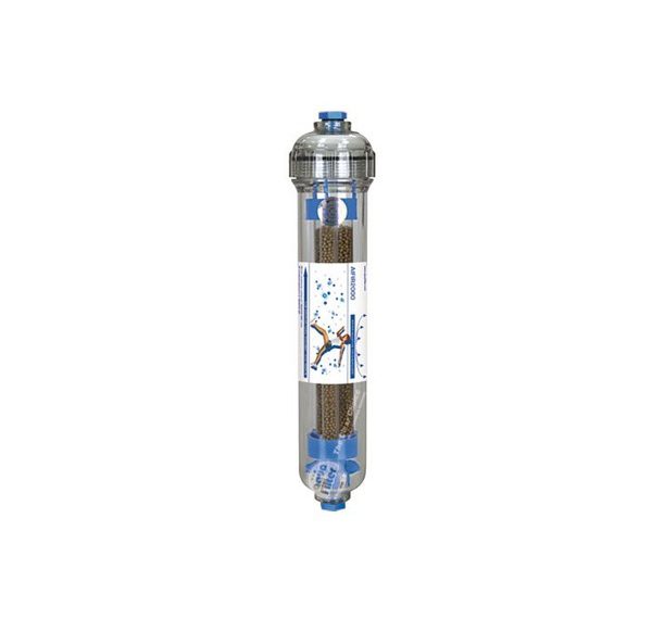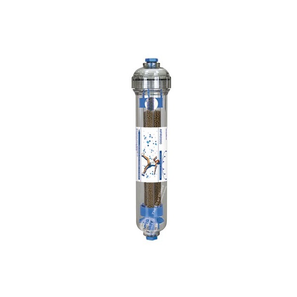 Die Kartusche wird in einem durchsichtigen PET 2“ Liniengehäuse mit ¼“ IG Anschluss angeboten und mit zwei Verschlussstopfen die mit einem O‑Ring ausgestattet sind. Die Verschlussstopfen hindern Verschmutzungen und Mikroorganismen ins Innere der Kartusche zu gelangen. Das PET Gehäuse wirkt wie ein Schirm der die Mikrostrahlung nicht nach Außen dringen lässt. Das Produkt wird unter außergewöhnlich hohen mikrobiologischen Reinheitsstandards zusammengesetzt. Die Kartusche sollte nicht mit mikrobiologisch verunreinigtem Wasser oder mit Wasser unbekannter Herkunft verwendet werden. Die Kartusche ist für die Aufbereitung von kaltem Trink- und Nutzwasser bestimmt.
