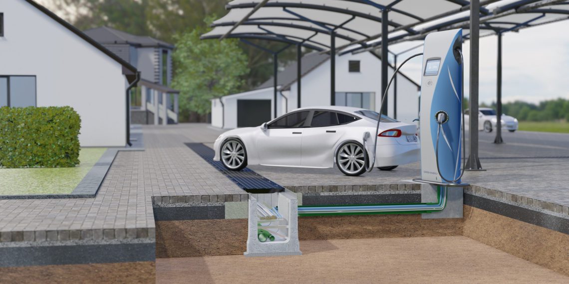 Leider häufen sich die Hochwasserkatastrophen bundesweit und sorgten auch im Sommer 2021 für negative Schlagzeilen. Wie groß ist die Sorge vor massiven Regenfällen in Zukunft und was bedeutet das für die Versorgungsleitungen von Elektroladesäulen? „Das Eindringen von Wasser stellt keine Gefahr dar. Zur Sicherstellung des Wasserablaufs beugen wir mit entsprechenden Vertikalbohrungen vor. Die hierzu erzeugten Öffnungen in der Rinnenunterseite sorgen dafür, dass das eingedrungene Wasser gedrosselt wieder abfließen kann”, erklärt Dürrschnabel das Ablaufsystem. Die Rinne wird dafür entweder über Verrohrung an den kommunalen Regenwasserkanal angeschlossen oder das Wasser läuft über ein Versickerungssystem ab, beispielsweise über einen BIRCOrigolentunnel von StormTech.