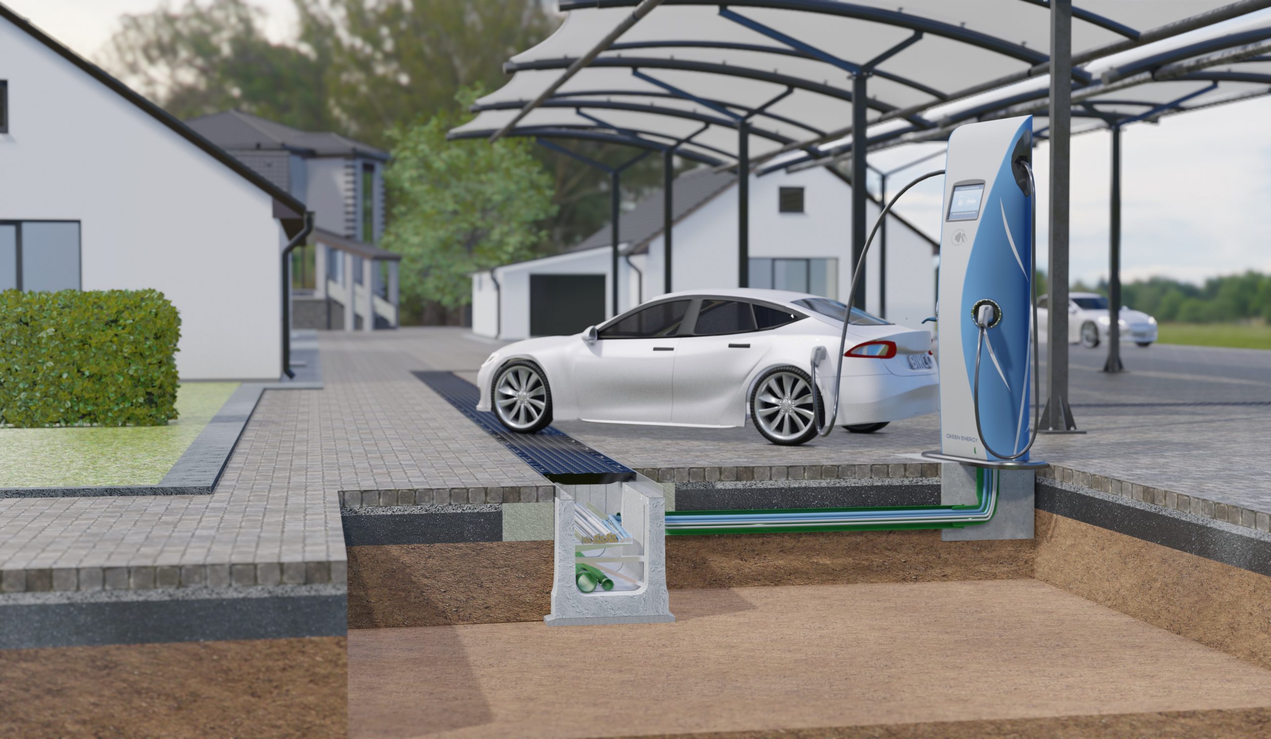 Unabhängig davon, ob es sich um einen Neubau oder Altbestand handelt, kommt das Thema Elektromobilität mit großen Schritten auf Kommunen und Bauherren zu. Schon in naher Zukunft sollen Parkplätze an Gebäuden mit Schutzrohren für Elektrokabel ausgestattet sein. Der Versorgungskanal bietet hierzu eine clevere Alternative. Die Rinnenelemente entsprechen den aktuell anerkannten Regeln der Technik und sind im Bedarfsfall schnell und einfach zugänglich. Wartung und Reparatur, aber auch Ergänzungen von kompletten Leitungssträngen sind ohne weitere Erdarbeiten möglich. Für den Betreiber werden Arbeitszeit und finanzieller Aufwand damit effizient kalkulierbar. Teil der Detailplanung ist zudem die Berechnung der zu erwartenden Belastung bzw. Spitzenlasten, die der Betonkörper und die Abdeckungen über Jahre hinweg aushalten müssen. Das ist ein Garant für die Langlebigkeit des Systems und erhöht die Planungssicherheit.