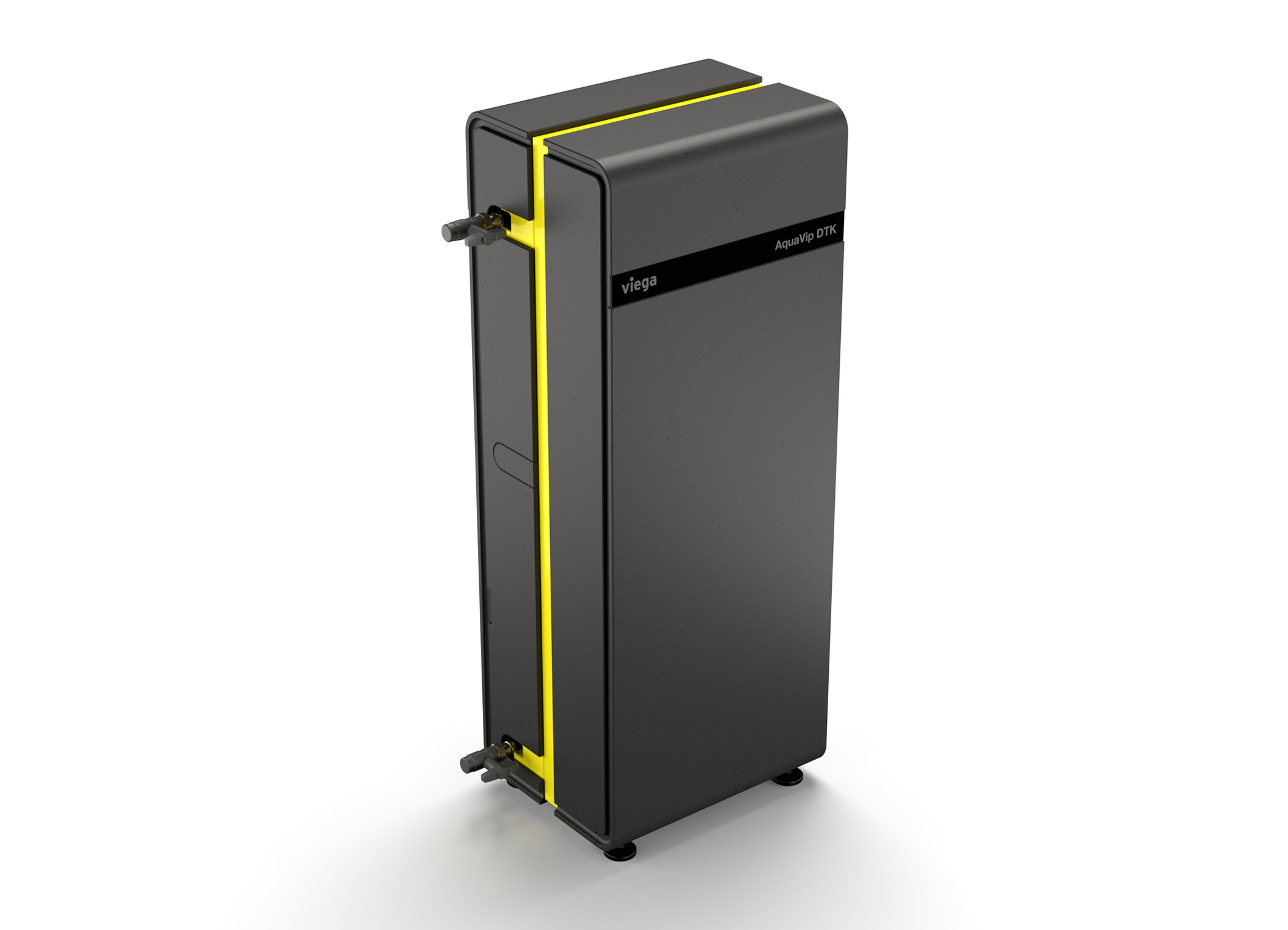 Mit dem Trinkwasser-Management-System Aqua Vip Solutions betrachtet Viega sowohl diese vier Einflussfaktoren als auch die zwischen ihnen bestehenden Wechselbeziehungen ganzheitlich, vom Hausanschluss bis zur letzten Zapfstelle. Über einen neu konstruierten Durchfluss-Trinkwassererwärmer (DTE) wird beispielsweise die Menge des vorzuhaltenden Trinkwassers warm reduziert. Elektronisch gesteuerte „Easytop“-Regulierventile sorgen wiederum für eine hygienegerechte Temperaturhaltung in der Trinkwasserverteilung. Automatisch auslösende Spülstationen, Spülkästen und Auslaufarmaturen sichern den bestimmungsgemäßen Betrieb der Trinkwasseranlage ab. Kommt es in den Trinkwasser kalt führenden Rohrleitungen zu einem hygienekritischen Temperaturanstieg, wird zudem auch dieser Volumenstrom entsprechend behandelt, und zwar indem er über einen ebenfalls neu entwickelten Durchfluss-Trinkwasserkühler (DTK) geführt wird.