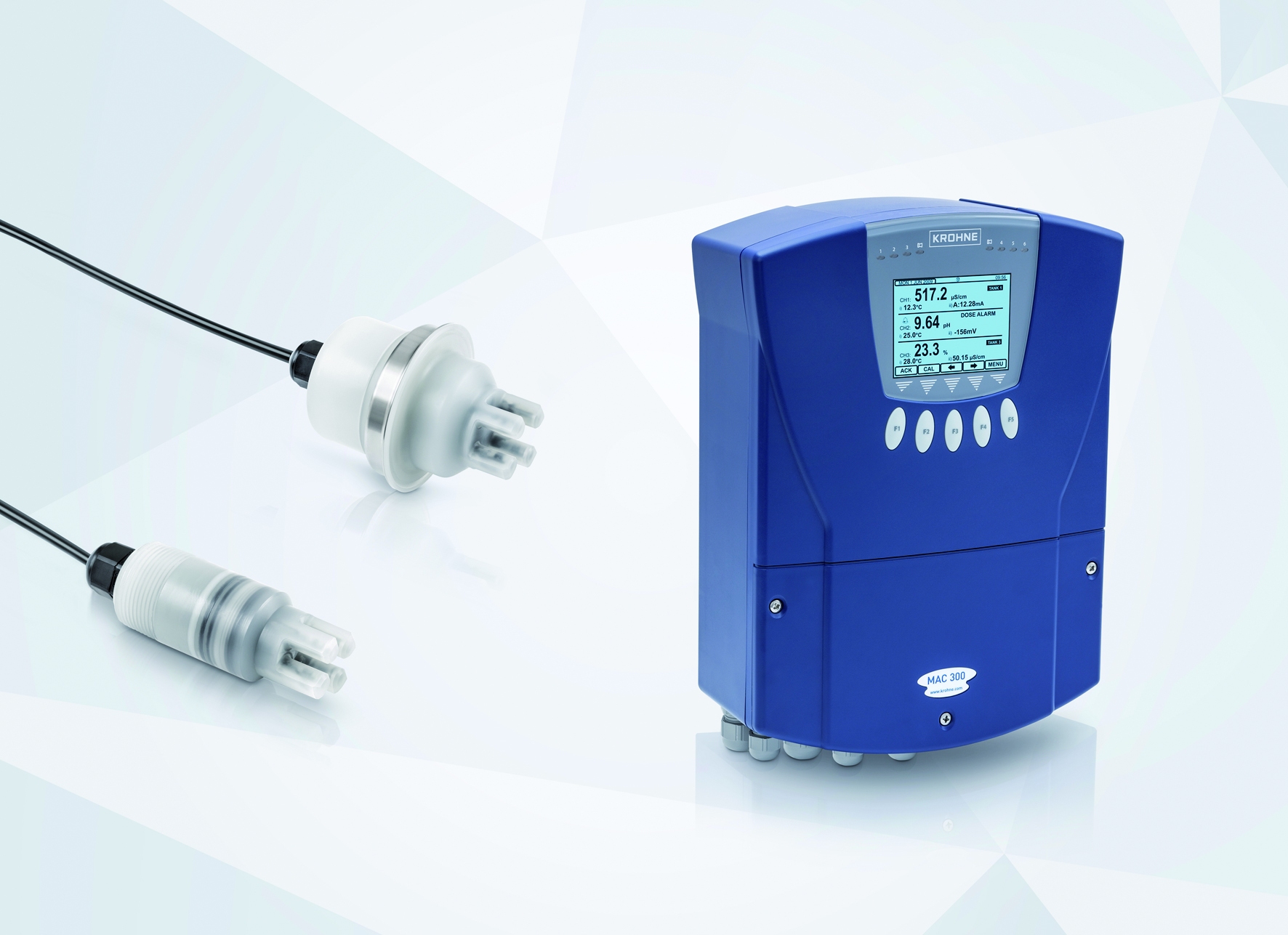 Der MAC 300 ist ein menügesteuerter Analysetransmitter für Sensoren der Reihnen Optisens TSS, pH/ORP und COND. Die Signale von bis zu drei angeschlossenen Sensoren überträgt er über bis zu sechs analoge 0/4…20-mA-Ausgänge, Relaisausgänge oder optional über Modbus an ein Leitsystem. Der Transmitter ist mit einer beleuchteten LCD-Anzeige ausgestattet und in einem robusten Gehäuse (IP66/67, NEMA 4/4X) zur Wandmontage oder zum Schalttafeleinbau untergebracht. Er bietet optionale Funktionen für Live-Datenverläufe und Datenaufzeichung sowie einen SD-Kartensteckplatz zum Speichern von Parametersätzen und zum Laden neuer Firmware.