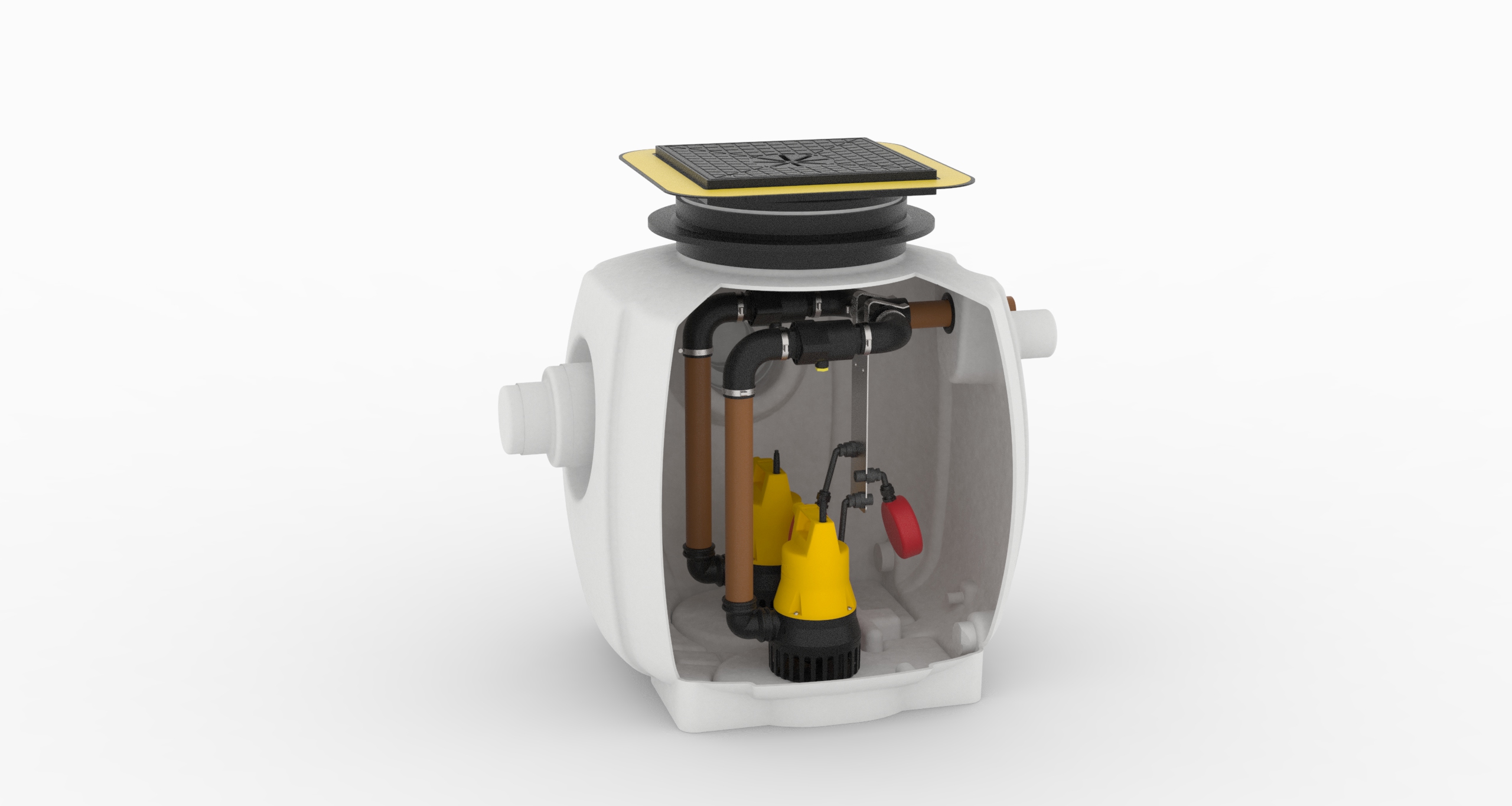 In Kellerräumen, Waschküchen oder Tiefgaragen fällt auf unterschiedlichste Weise Wasser an. Ob von Waschbecken, Waschmaschinen oder durch eindringendes Regenwasser, das Wasser muss rückstausicher in die öffentliche Kanalisation gepumpt werden. Hierfür hat Pentair Jung Pumpen zwei druckstabile Kunststoffbehälter entwickelt, die das Schmutzwasser aufnehmen und die sowohl Unter- als auch Überflur installiert werden können. Je nach Schmutzwasseranfall und zu fördernder Höhe, können die unterschiedlichsten Pumpen aus dem Herstellerportfolio als Einzel- oder Doppelinstallation in die Behälter eingesetzt werden.