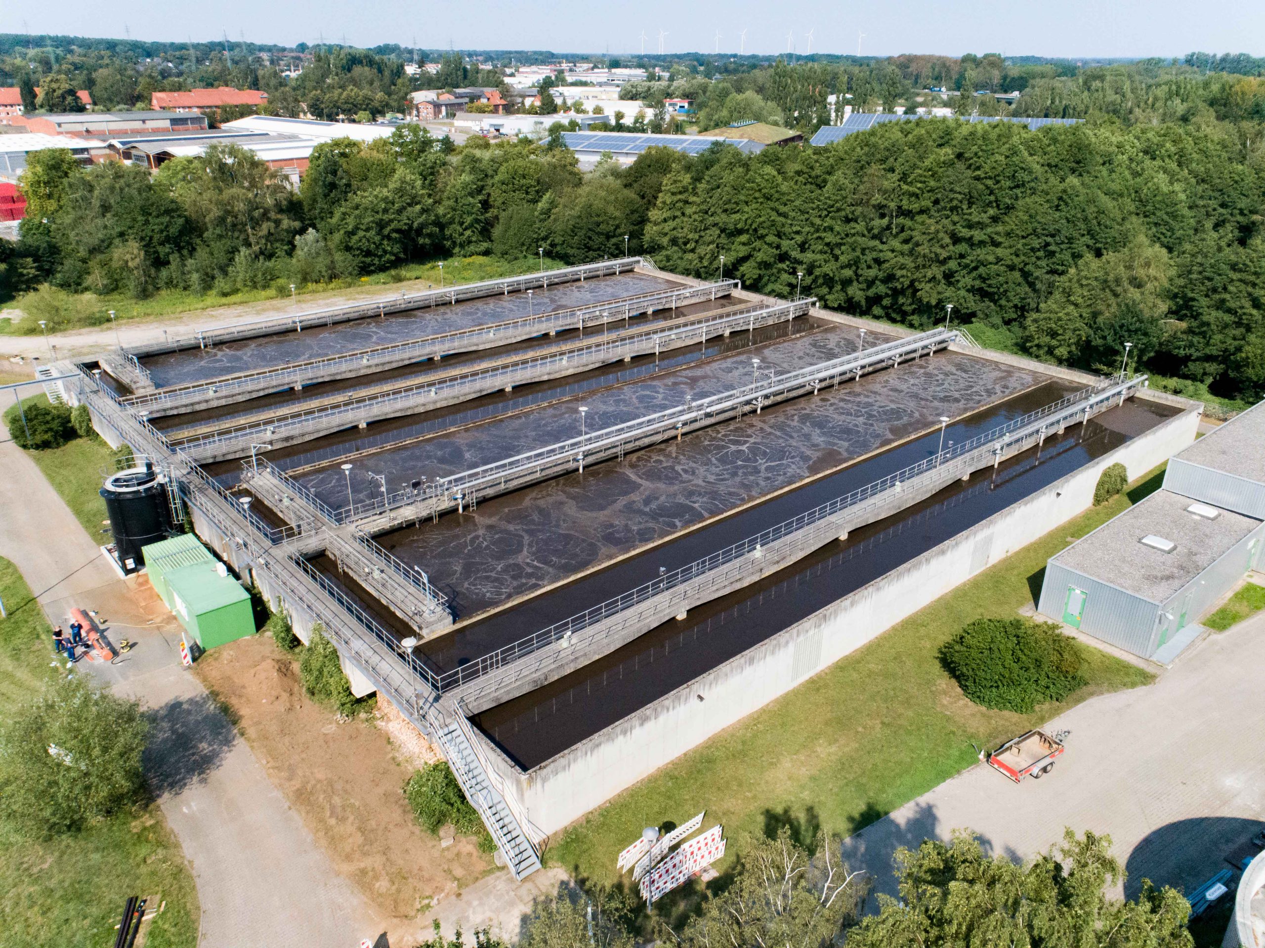 Die Kläranlage der niedersächsischen Hansestadt Lüneburg ist für eine Größe von rund 325.000 Einwohnerwerten ausgelegt. Sie hat mehrere Klärbecken und verteilt die für die biologische Abwasseraufbereitung erforderliche Luft mittels Blendenregulierschieber auf die bis zu 7 m tiefen Becken. Bisher waren dort vier klassische Turboverdichter mit je 200 kW für die Drucklufterzeugung der Belebung installiert. Der Betreiber suchte allerdings nach einer Lösung, die Lufterzeugung direkter, dynamischer und breitbandiger steuern zu können und unabhängig von extremen Wetterlagen einen konstanteren Lufteintrag zu erzielen. Da sowohl der von den Verdichtern erzeugte Luftmassenstrom als auch die Leistungsaufnahme messtechnisch erfasst und dokumentiert werden, war der Effekt des neu installierten Schraubengebläses schon nach kurzer Zeit deutlich erkennbar.