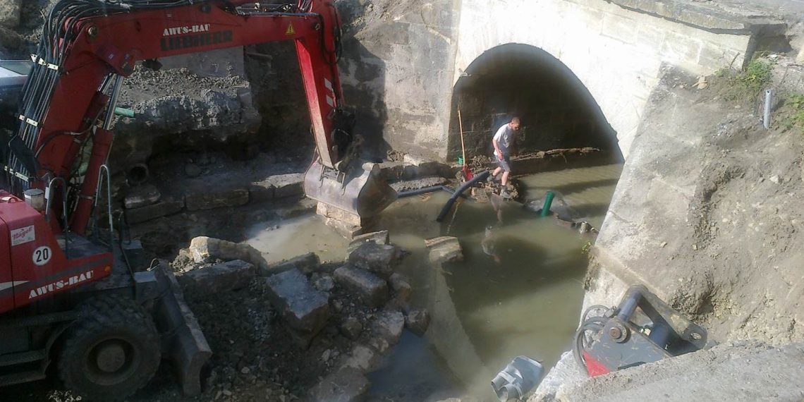 Auch fast ein Jahr nach der Hochwasserkatastrophe in Braunsbach sind die Sanierungsarbeiten in dem kleinen Ort im Landkreis Schwäbisch Hall noch lange nicht abgeschlossen. Das an der Beseitigung der Hochwasserschäden beteiligte Bauunternehmen AWUS-BAU aus Aalen hat dabei leistungsstarke Pumpen von AURAS im Einsatz.