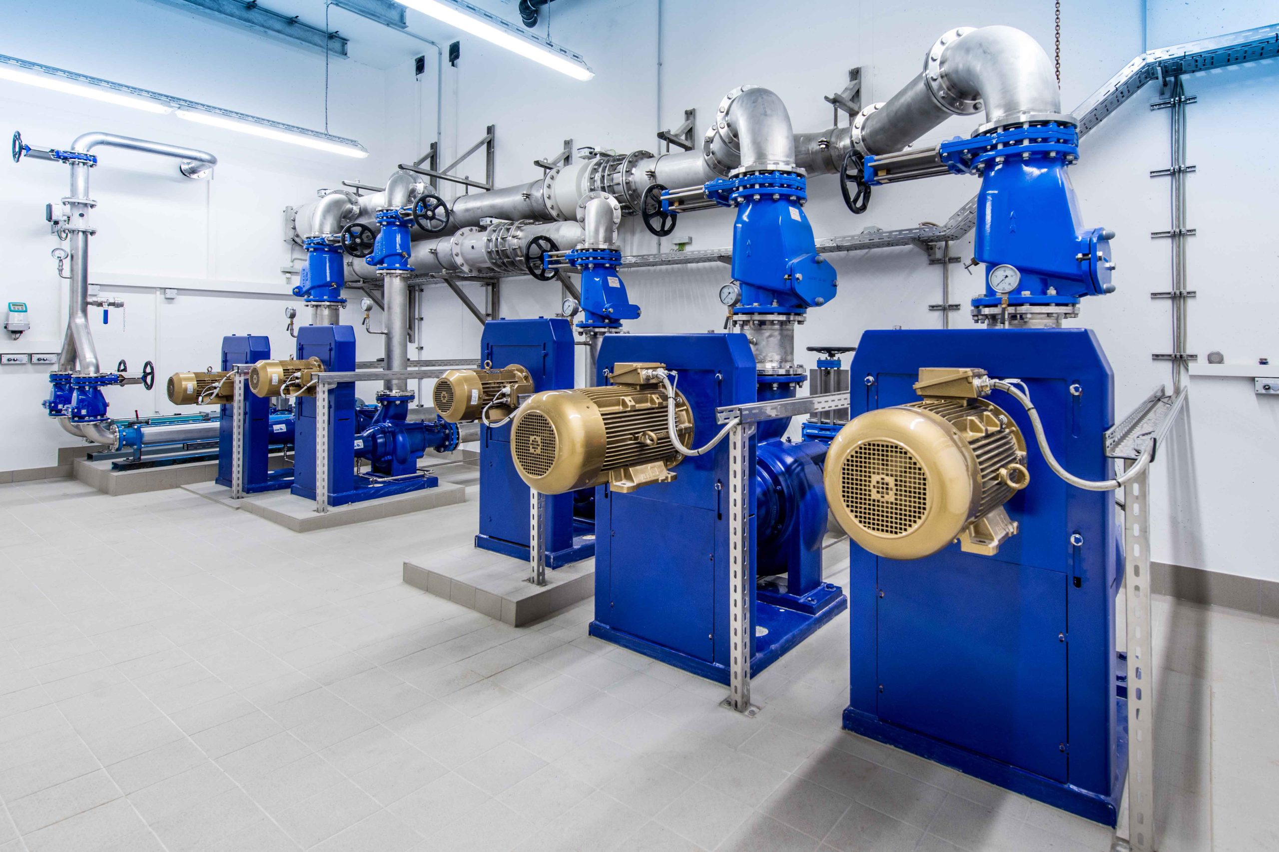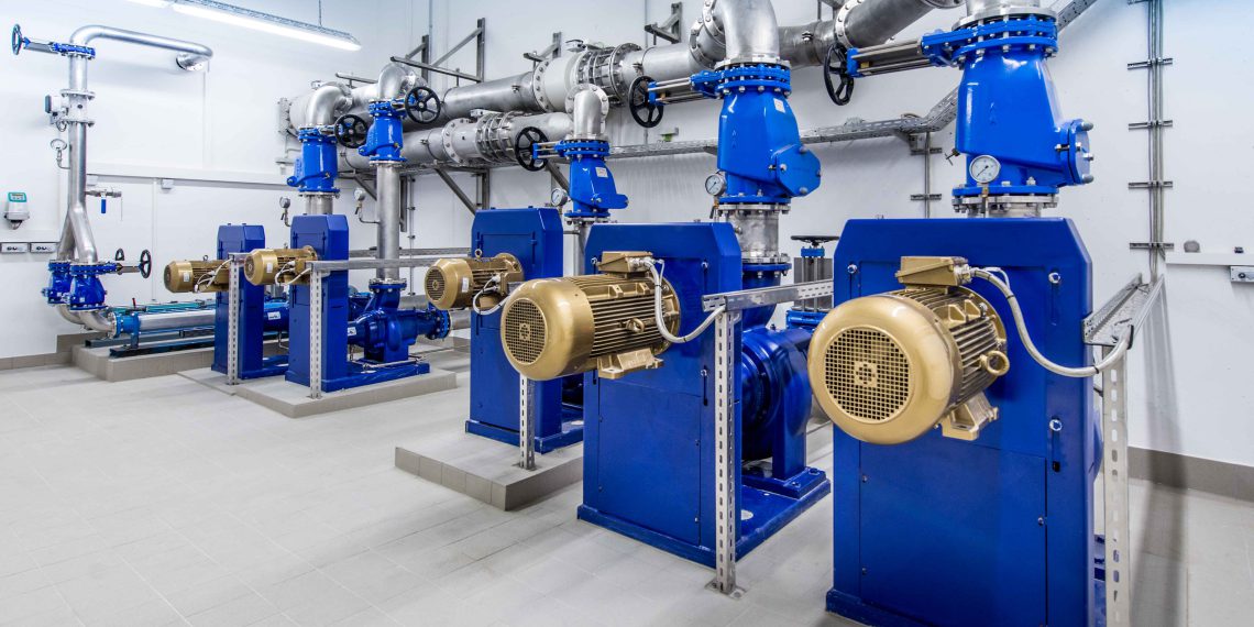 Kläran­lage Volkach; hier wur­den Sewa­tec-Pumpen mit Supre­mem­o­toren mit Riemenantrieb verbaut.