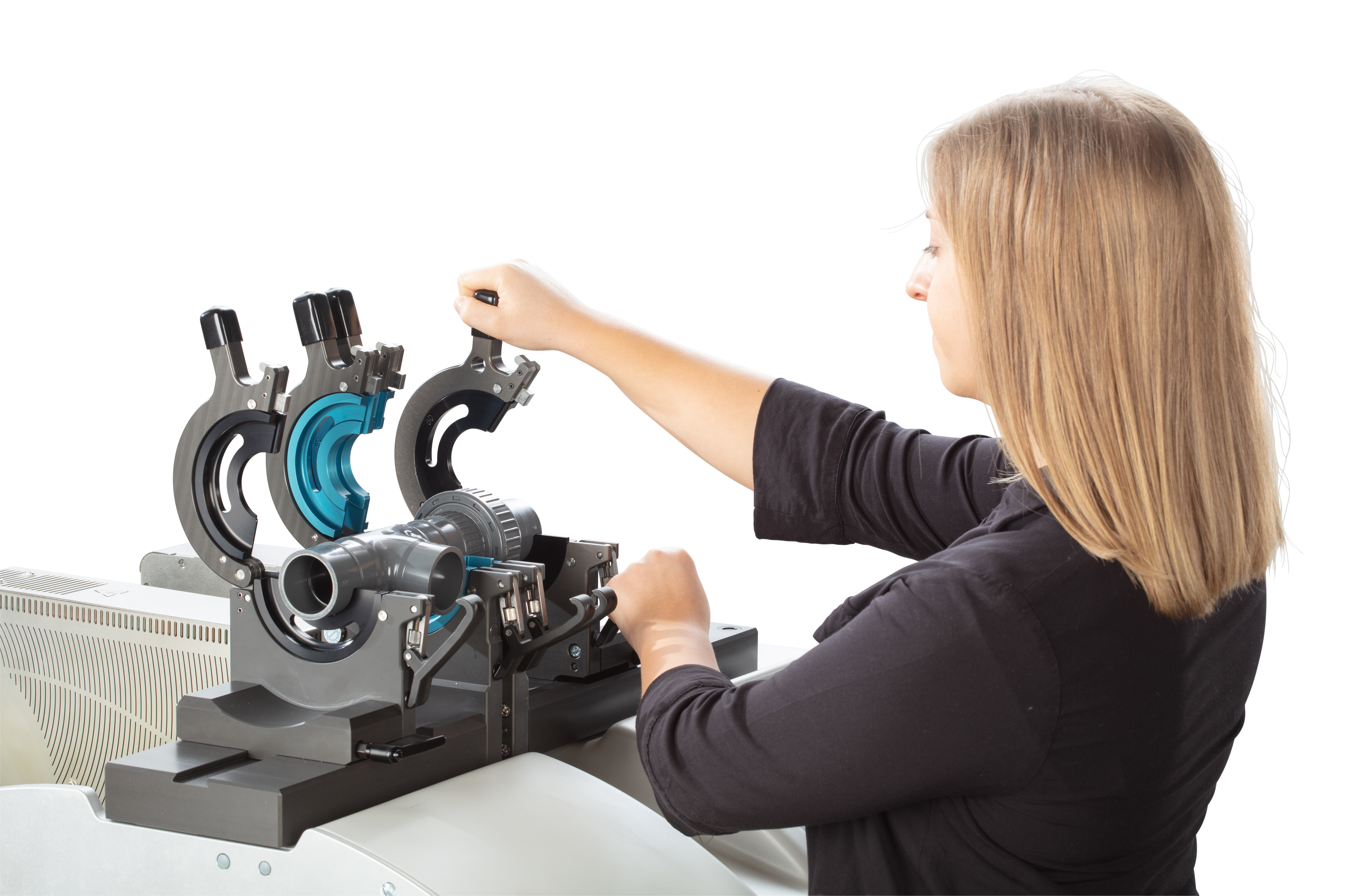Das IR PVC‑U System ermöglicht maschinengesteuerte Prozesse für PVC‑U Rohrleitungssysteme, was das Risiko menschlichen Versagens reduziert und die Wiederholbarkeit bei jeder Rohrverbindung sicherstellt. Gleichzeitig verbessert IR-Schweißen die Zuverlässigkeit durch eine automatische Überwachung, die jede Schweißnaht kontrolliert und evaluiert, sowie durch das Fehlen von Lösungsmitteln, was zu einer höheren chemischen Beständigkeit führt. Darüber hinaus steigert der Prozess die Arbeitssicherheit während der Installation, da die mit Lösungsmitteln verbundenen Dämpfe vermieden werden. GF Piping Systems hat spezielle Spanneinsätze entwickelt, mit denen Kunden einfach ihre IR 63 Plus und IR 110 A Schweißmaschinen für das PVC‑U Schweißen anpassen können.