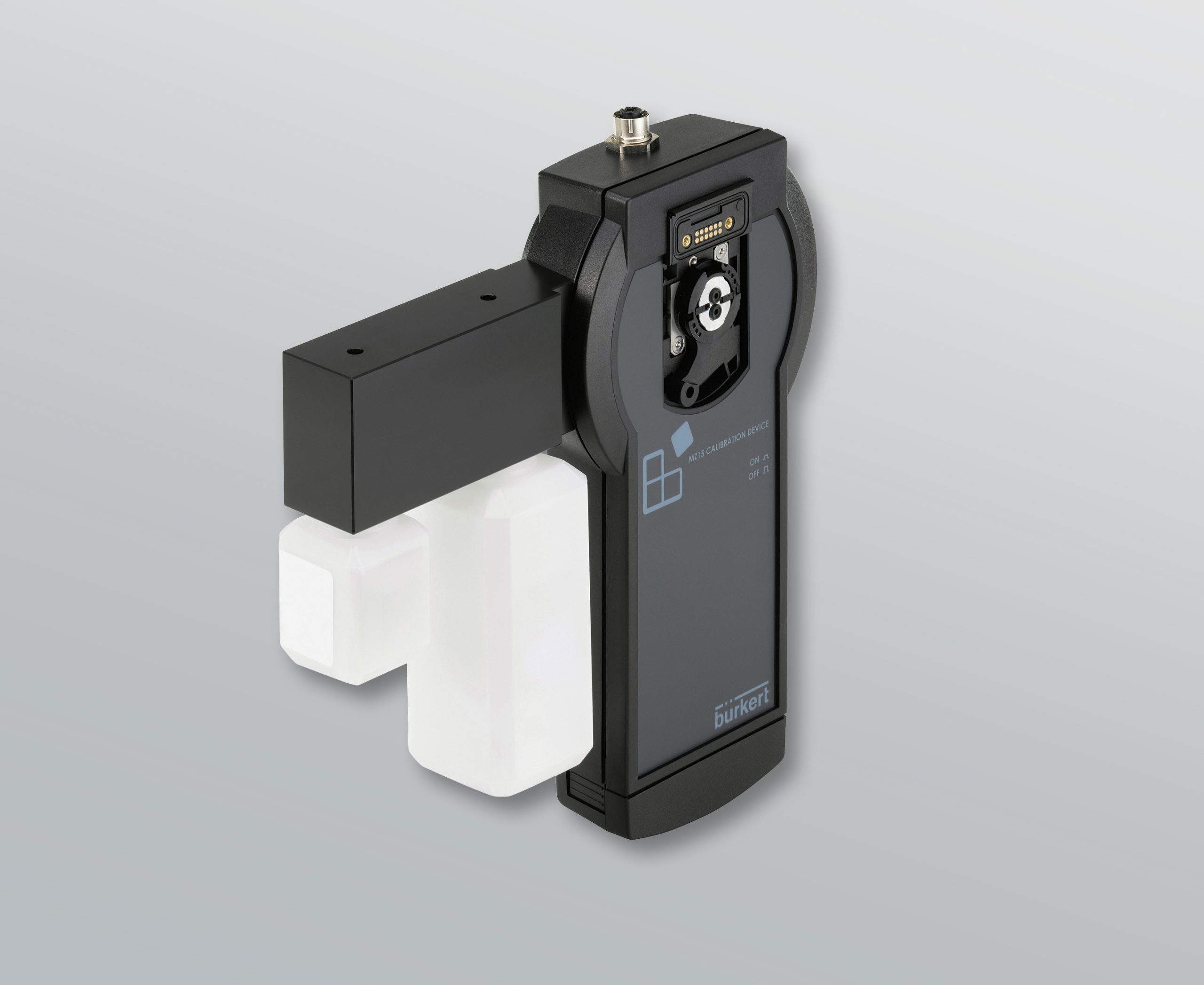 Das leichte Handheld-Werkzeug ist in einer Grundversion für die Reinigung und in einer erweiterten Variante, die sowohl Reinigung als auch Neukalibrierung übernimmt, erhältlich. Für eine einfache Handhabung sind die Tanks mit Reinigungsflüssigkeit und ggf. Kalibrierlösung im Handheld-Werkzeug integriert. Das System ist auf einen geringen Chemikalienverbrauch optimiert. Die benötigten Flüssigkeiten für die Reinigung oder Kalibrierung werden einfach in die Tanks gefüllt. Die hot-swap-fähigen Messwürfel werden dann einzeln im laufenden Betrieb aus dem Analysesystem entnommen, in das Reinigungswerkzeug gesteckt, von diesem gesäubert und ggf. kalibriert und wieder in das Online-Analyse-System zurückgesteckt. Über die einheitliche Schnittstelle der Bürkert Geräteplattform EDIP, basierend auf CANopen, lässt sich das MZ15 für eine komfortable Kalibrierung an ein 7″-Touchscreen oder einen PC mit der Bürkert Communicator Software anschließen. Das erlaubt eine schnelle, einfache Kalibrierung und erleichtert die Dokumentation.