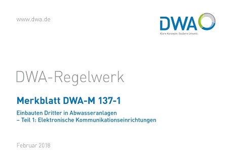 Die Deutsche Vereinigung für Wasserwirtschaft, Abwasser und Abfall (DWA) hat das Merkblatt DWA‑M 137–1 „Einbauten Dritter in Abwasseranlagen – Teil 1: Elektronische Kommunikationseinrichtungen” veröffentlicht.