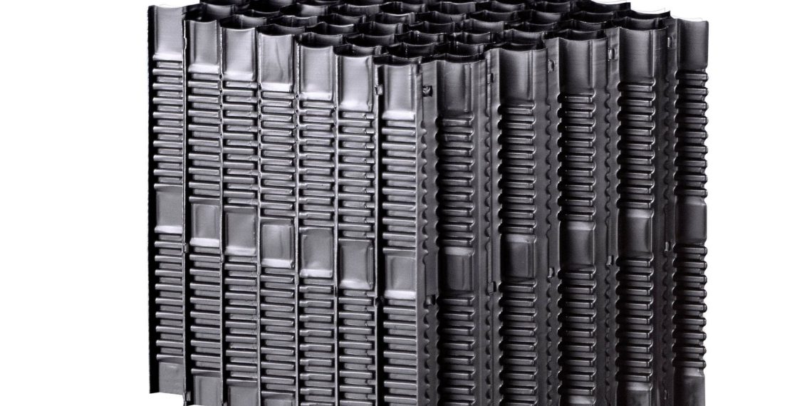 Bei TUBEdek Lamellenklärer von Enexio handelt es sich um einen Parallelplattenabscheider, auch Lamellenpaket oder Lamellenabscheider genannt, der aus einzelnen V‑förmigen Profilen zusammengefügt wird. Diese Bauweise ermöglicht eine Erweiterung der Absetzfläche für Feststoffe, die um das sechs bis 15fache pro Quadratmeter an Grundfläche beträgt und es erlaubt, kleinere Becken zu bauen. Damit sparen Sie Platz und Kosten für Ihre Trinkwasseraufbereitung oder Abwasserreinigung.