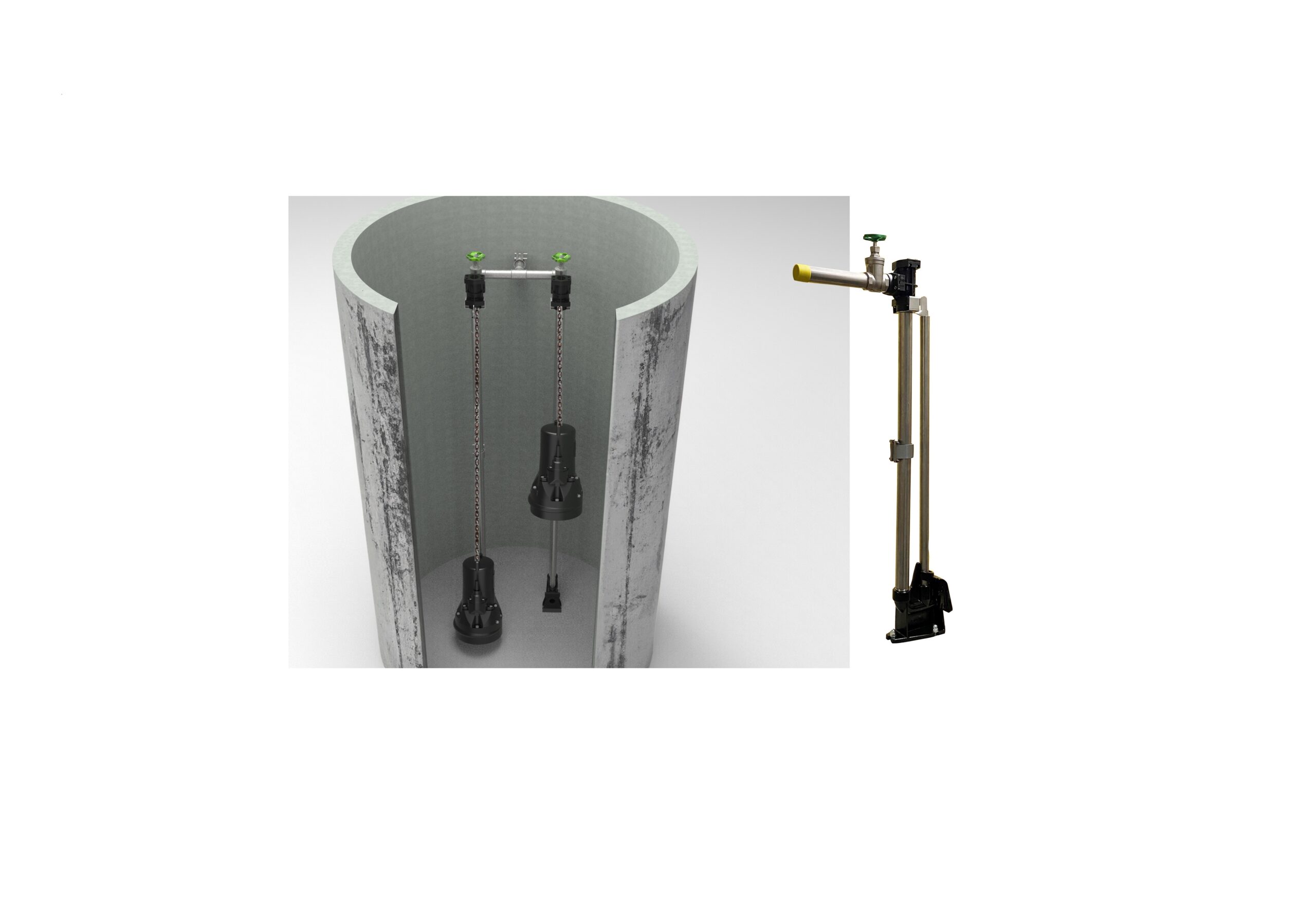 Jung Pumpen erweitert sein neues Einbauset für Doppelpumpenanlagen. Abwasserpumpen werden in der Regel mit Kupplungsfüßen im Schacht befestigt. Die Pumpe wird dabei mittels Ketten an Führungsrohren in den Schacht abgesenkt und kuppelt sich durch ihr Eigengewicht an die Druckleitung an. Rückschlagventile und Absperrschieber sind ebenfalls innerhalb des Schachtes installiert. Nicht nur diese Bauteile sind aggressiven Umgebungseinflüssen ausgesetzt, auch die Pumpe selbst wird häufig in Mitleidenschaft gezogen.