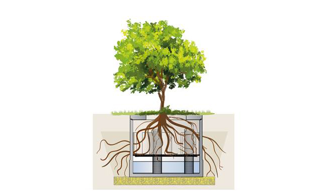 Mit der Baumrigole ViaTree ergänzt die Mall GmbH ihr Produktprogramm im Bereich der blau-grün-grauen Infrastruktur. ViaTree besteht aus einem Stahlbetonbehälter mit integriertem Wasserspeicher und umlaufenden Wurzelfenstern, durch die sich die Wurzeln ins umgebende Baumsubstrat ausdehnen können. Die neue Baumrigole eignet sich auch zum Einbau unter Verkehrsflächen.