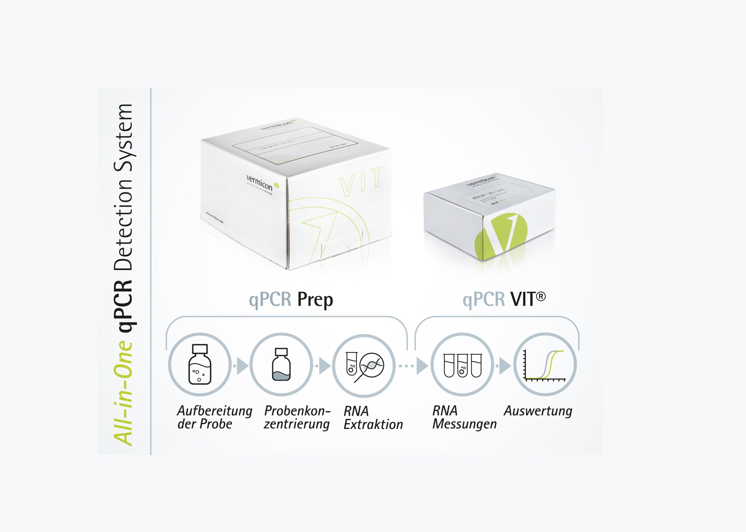 Die Stärke der qPCR-Technologie zeigt sich beim präzisen Nachweis von Viren, wofür sie sich besser eignet als für die Analyse von Bakterien. Dies ergibt sich aus der geringen Größe der Viren im Nanometerbereich und aus der Tatsache, dass Viren im Gegensatz zu Bakterien keine lebenden Mikroorganismen, sondern im Wesentlichen nur proteinumhüllte Nukleinsäuren sind. Das Unternehmen vermicon hat daher seine Expertise auf dem Gebiet der molekularen Nukleinsäuretechnologien genutzt, um maßgeschneiderte qPCR-Testkits zu entwickeln. Die Produkte ermöglichen eine schnelle und genaue Bestimmung der Viruskonzentration in einer Vielzahl von Umgebungen, einschließlich Abwasser und anderen Umweltproben. Die ersten Testkits, qPCR VIT Corona, qPCR VIT Influenza und qPCR Prep Wastewater, dienen der abwasserbasierten Überwachung der epidemiologischen Situation von SARS- CoV‑2 und Influenzaviren.