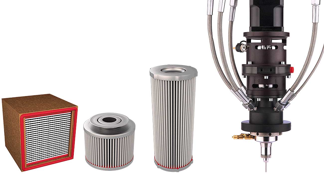 Mit Misch- und Dosieranlagen von Rampf Production Systems werden die in der Filterindustrie eingesetzten reaktiven Kunststoffsysteme zum Kleben und Abdichten prozesssicher verarbeitet. In der Regel werden Filter in großen Stückzahlen hergestellt, was hochautomatisierte und ‑flexible Herstellungslösungen voraussetzt. Hier liegt eine weitere Kernkompetenz des Unternehmens mit Sitz in Zimmern ob Rottweil: das Automatisieren. Das Unternehmen bietet Automatisierungskonzepte mit integriertem Teiletransport und Wärmebehandlung, Technologien der Montage- und Fügetechnik sowie logistische und qualitätssicherungsrelevante Lösungen. Sowohl die Integration von Oberflächenaktivierungsprozessen als auch Prüf- und Messtechnik zur Absicherung der Produktionsprozesse sind Teil der kundenspezifischen Lösungen.