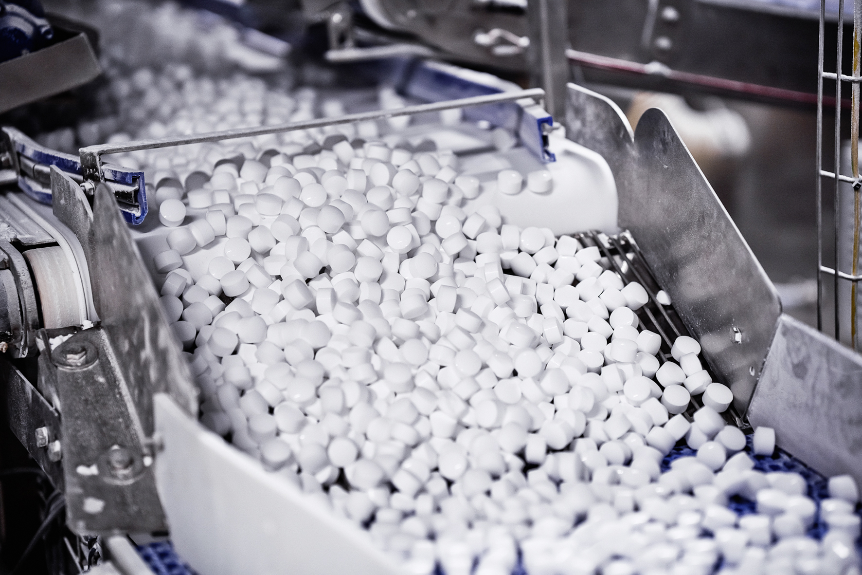 Salztablet­ten beste­hen aus Natri­um­chlo­rid und entziehen dem Wass­er aus Kalz­i­um und Mag­ne­sium beste­hen­den Kalk. Durch Ablagerun­gen infolge chemis­ch­er Reak­tio­nen mit alka­lis­chen Stof­fen oder Wasserver­damp­fung beein­trächtigt dieser beispiel­sweise die Funk­tions­fähigkeit von Geräten oder führt zu Leitungsver­stop­fun­gen. Dies erfordert einen vor­beu­gen­den Schutz, indem das als hartes Wass­er beze­ich­nete kalkhaltige Wass­er durch Enthär­tungsan­la­gen geführt und somit weich gemacht wird. Salztablet­ten sind in jed­er Wasser­en­thär­tungsan­lage ein­set­zbar, ob für Eigen­heim, Badeanstalt, Brauerei, Gärt­nerei, Gas­tronomie, Waschan­lage, Wasser­auf­bere­itungs­be­trieb oder Kraftwerks- kühlung.