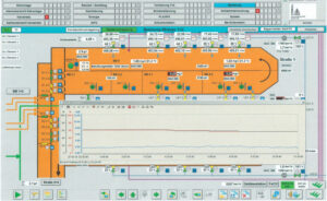 Bei der Gleit- und Konstantdruckregelung gibt es zwei Regelkreise: Zum einen den Sauerstoffregelkreis, zum anderen den Regelkreis für die Verdichter. Die Verdichter erhalten nur einen Vorgabewert, der eingehalten werden muss. Aus dem Diagramm kann man unter anderem den Druck nach den Iris® Blenden-Regulierschiebern ablesen. Dadurch lässt sich ein eventuell erforderlicher Wartungsbedarf der Belüfter erkennen.