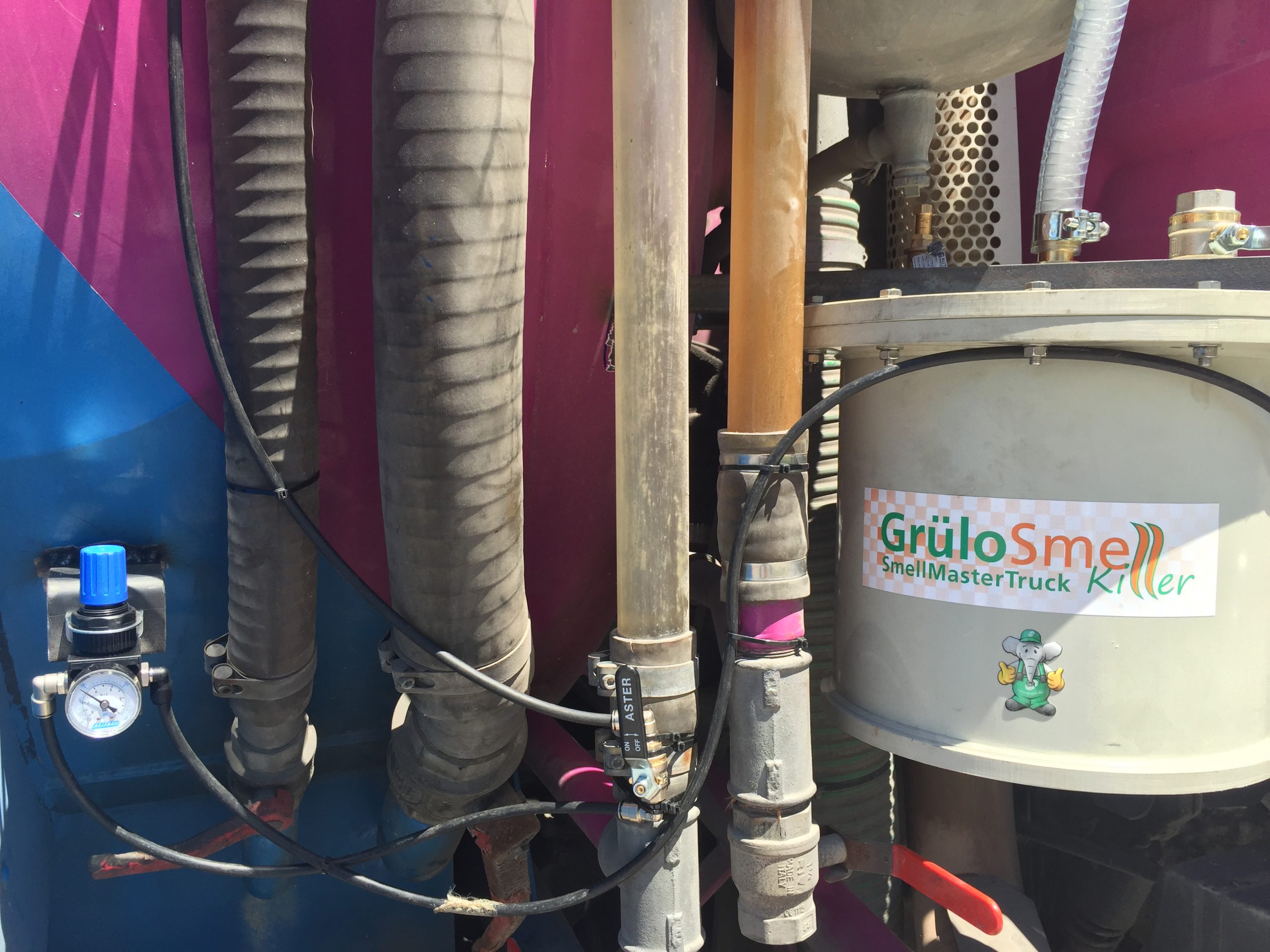 Wenn die Fet­zel Kanal­tech­nik aus dem öster­re­ichis­chen Schlins früher mit ihrem Saug­fahrzeug vor­fuhr, kam es häu­fig zu Beschw­er­den von Anwohn­ern. Fir­menin­hab­er Hel­mut Fet­zel reagierte darauf mit der Beimis­chung ver­schieden­er Flüs­sigkeit­en im Betrieb­swass­er der Saug­pumpen. Die Geruch­se­mis­sio­nen kon­nten zwar etwas gemindert wer­den, die Maß­nahme erwies sich allerd­ings als viel zu teuer. Mit dem „Smell­Mas­terTruck“ von Grüning+Loske wurde schließlich eine effek­tive und kostengün­stige Lösung gefun­den. Bei diesem Sys­tem wer­den Moleküle in winzig kleine Par­tikel ver­dampft und dem zu entsor­gen­den Gut zuge­führt. Die beim Absaugvor­gang entste­hende, stark belastete Abluft wird umge­hend neu­tral­isiert. Heute beklagt sich nie­mand mehr, wenn das Saug­fahrzeug der Fet­zel Kanal­tech­nik kommt — im Gegen­teil: „Wo es früher übel aus der Aus­blasleitung stank, kommt nun ein angenehm riechen­der Luft­strom“, freut sich Hel­mut Fet­zel und berichtet, dass seine Kun­den zunehmend nach dem „nicht stink­enden“ Saug­fahrzeug fragen.