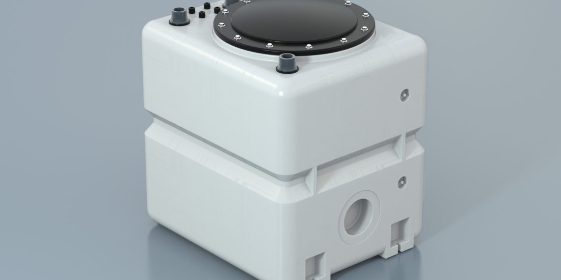 PG-Kabelverschraubungen sowie als Muffe ausgeführte Zulaufanschlüsse auf drei Behälterseiten (zwei seitlich, einer oben angeordnet, jeweils in DN 100) ermöglichen einen flexiblen Einsatz. Dabei sind die Zuläufe auf drei unterschiedlichen Niveaus angebracht (180 mm, 520 mm und 700 mm). Die muffenförmige Ausführung der Zuläufe ermöglicht eine einfache Verbindung bei räumlich begrenzter Aufstellung, zudem ist ein Muffenanschluss DN50 ist für den Anschluss einer Handmembranpumpe vorhanden.