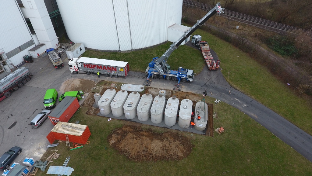 Der neue Ovalbehälter mit variablen Längen von 6, 7 und 8 m ermöglicht die für Mall typische Flexibilität mit Nennvolumen zwischen 30 und 40 m³ bei maximalen Einzelgewichten von ca. 22 Tonnen. In der Regenwasserbehandlung, als Löschwasserbehälter und Pelletspeicher haben sich die Ovalbehälter schon bewährt; Mall bietet sie darüber hinaus auch in der Regenwassernutzung oder als Kläranlagen an. Der Werkstoff Beton ist robust, ökologisch und preiswert; alle Stahlbetonbehälter von Mall sind fugenlos hergestellt und wasserdicht, variabel und vielseitig einsetzbar. Zu- und Abläufe in Form von Kernbohrungen oder rohe Aussparungen lassen sich schon bei der Produktion mit integrieren.