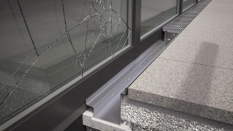 Moderne Glasfassaden sind zwar robust, aber Schäden können dennoch auftreten. Damit ist eine oft kostspielige und aufwändige Reparatur erforderlich. Denn wenn defekte Fassadenelemente entfernt werden müssen, ist meist der angrenzende Oberflächenbereich mit betroffen. Dabei werden häufig die Fassadenentwässerung oder angrenzender Belag in Mitleidenschaft gezogen. Insbesondere bei bodentiefer Verglasung, der Pfosten-Riegel-Fassade, wandert die untere Pressleiste, mit der die Verglasung arretiert ist, unter die Geländeoberkante in den nicht sichtbaren Bereich.