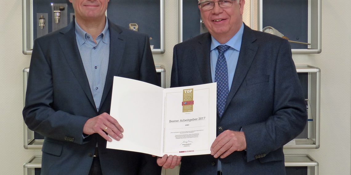 Auch Michael Juch­heim, der mit seinem Vater das Unternehmen führt, freut sich über die Ausze­ich­nung und ver­weist auf das her­vor­ra­gende Abschnei­den im Branchen­rank­ing. „In der Branche ‘Elek­tron­ik, Elek­trotech­nik, medi­zinis­che Geräte‘ wur­den 63 Unternehmen unter­sucht, wobei zusät­zlich zwis­chen großen Unternehmen mit mehr als 2.000 Mitar­beit­ern und mit­tleren Unternehmen mit bis zu 2.000 Mitar­beit­ern in Deutsch­land dif­feren­ziert wurde. Im gesamten Branchen­rank­ing kam JUMO auf den neun­ten Platz, bei den mit­tleren Unternehmen sog­ar auf den dritten.“