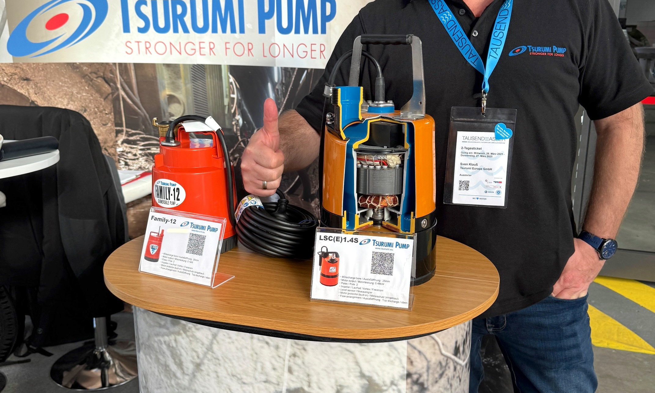Der Pumpen­spezial­ist Tsu­ru­mi hat auf der Messe Tausend­wass­er in Berlin seine kle­in­sten Pumpen vorgestellt: ein­phasige Pumpen für Schmutzwass­er, die uni­versell ein­set­zbar sind.