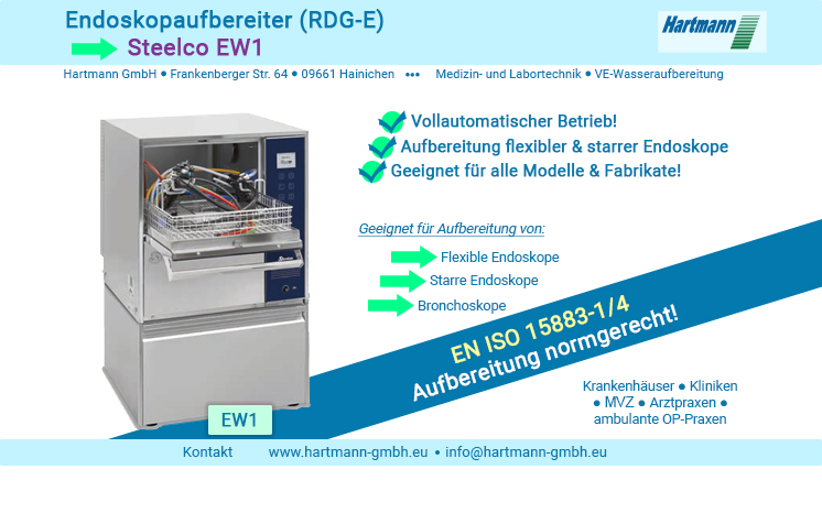 „Das Unternehmen Hartmann betreut seit über 40 Jahren Krankenhäuser, MVZ und niedergelassene Ärzte in ganz Deutschland. Unsere Kunden haben alle sehr hohe Qualitätsansprüche und achten sehr auf die korrekte Aufbereitung der Medizinprodukte. Wir versorgen unsere Kunden mit Reinigungs- und Desinfektionsgeräten, Dampfsterilisatoren, Niedertemperatursterilisatoren und Siegelgeräten. Die Betreuung unserer Kunden reicht von der Installation, der Wartung und Reparatur bis hin zur vorgeschriebenen Validierung. Ebenso unterstützen wir mit den Prüfindikatoren die Einhaltung der Prozessqualität. Es ist gut, dass die Anforderungen an Qualität steigen, dadurch fühlt man sich bei einer Behandlung viel sicherer. Jedoch spiegeln uns unsere Kunden immer mehr zurück, dass sie unter dem aktuellen Gesundheitssystem wirtschaftlich die Anforderungen fast nicht mehr umsetzen können. Einige Kunden mussten sogar Teilbereiche einstellen. Hier kann ich nur an unseren Gesundheitsminister appellieren, mehr finanzielle Mittel für die Aufbereitung und die Sicherheit bereitzustellen.“