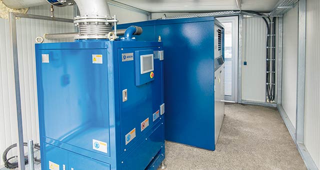 Auf den beiden Brücken entstand je ein kleines Gebäude, das den Gebläseverbund vor Wind und Wetter schützt. Die Umhausung dient ferner als Schallschutz. Der dezentrale Aufbau direkt über den Belebungsbecken hat für Vrabac einen weiteren Vorteil: „Wir sparen nicht nur einen aufwändigen Neubau, sondern vor allem lange und teure Zuleitungen aus Edelstahl.“ Ausgelegt ist der Tandem-Betrieb in erster Linie auf die stark unterschiedlichen Lastbedarfe in den Sommer- und Wintermonaten. Für den höheren Luftbedarf während der warmen Monate nutzt der Abwasserverband das Turbogebläse von AERZEN als effizientes Grundlastgerät, der Delta Hybrid wird dann für Spitzenlasten zugeschaltet. Der Typ AT 100–0.6 S liefert dafür einen Volumenstrom bis 4.200 Kubikmeter pro Stunde. Im Winter wird als Grundlast auf Delta Hybrid umgeschaltet, weil deutlich weniger Sauerstoff in der Belebung erforderlich ist. Der maximale Volumenstrom liegt beim Typ D 36 S bei 2.150 Kubikmetern in der Stunde. Dieser gravierende Unterschied resultiert vor allem aus der besonderen Geologie, weil in das Kanalnetz vergleichsweise viel Grundwasser eingeleitet wird und das Schmutzwasser verdünnt. Ursache ist eine Schieferschicht, die den Regen schlecht versickern lässt. So ist es in Wallau gelungen, die zugesagten Energieeinsparungen von 15 Prozent deutlich zu übertreffen: 26 Prozent sind es allein mit dem neuen Verbundsystem geworden, bezogen auf den Strombedarf der kompletten Kläranlage. Da auf die Belebung etwa die Hälfte des Strombedarfs entfällt, bringt die Umrüstung bezogen auf diesen Bereich damit Einsparungen von über 50 Prozent.