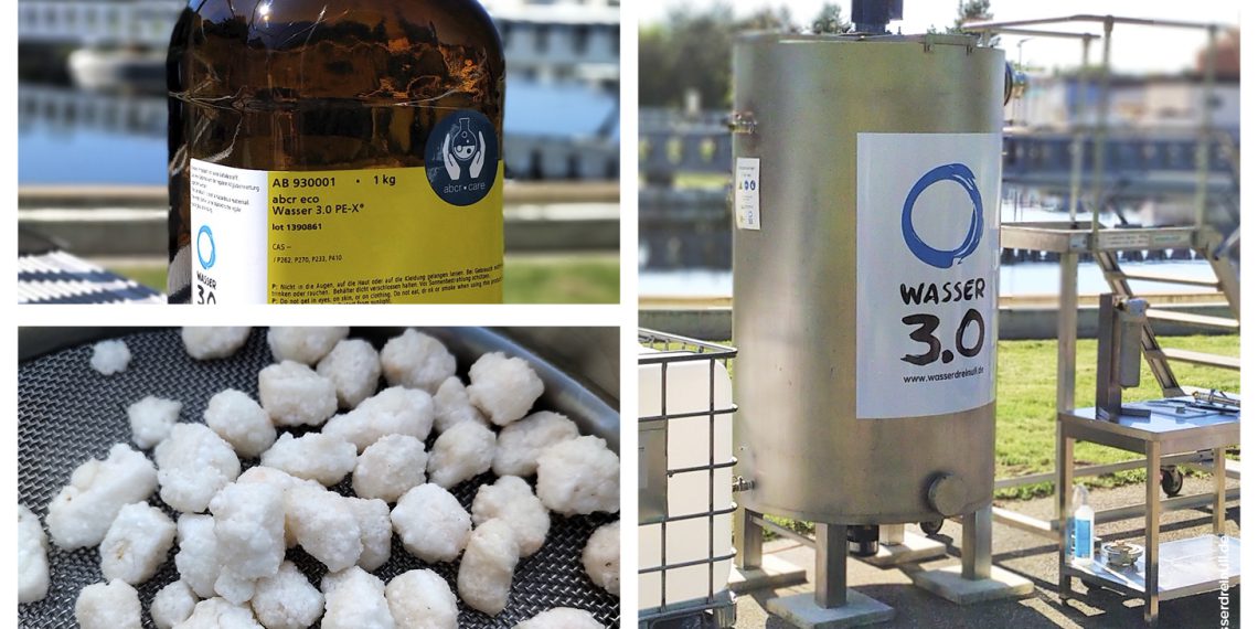 Wasser 3.0 PE‑X® ist eines der ersten filterfreien Verfahren zur Entfernung von Mikroplastik und/oder Mikroschadstoffen wie Pharmazeutika, Schwermetalle, PFAS und Pestizide aus Wässern. Bei Wasser 3.0 treffen high-tech Materialien auf low-tech Anlagendesign. Basierend auf Green Chemistry bilden drei Konzepte die Grundlage eines modularen und einfach skalierbaren Baukastensystems. Der Clou: Die Agglomerate schwimmen an der Oberfläche und können leicht abgeschöpft werden. In jeder Art von Wasser, wie kommunale und industrielle Abwässer, Prozess‑, Grund- und Oberflächenwasser oder Meerwasser, werden mit Wasser 3.0 PE‑X® Entfernungsraten von reproduzierbar > 95 % erreicht, unabhängig von Polymertyp, pH-Wert und Schadstoffkonzentration.