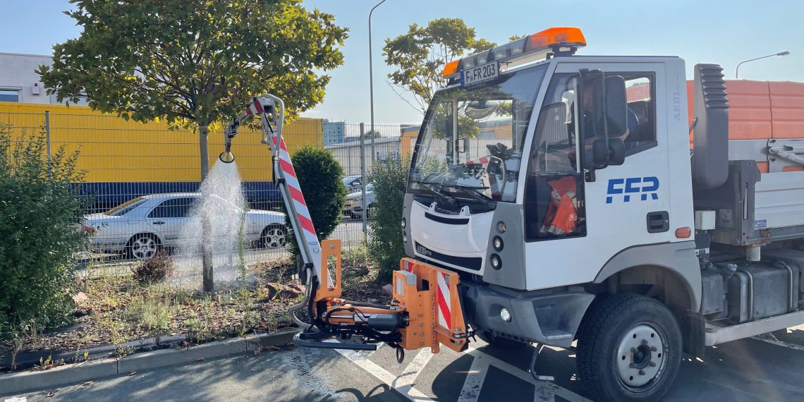 Frank­furt möchte Vor­re­it­er bei der wassers­paren­den Bewässerung von Stadt­bäu­men wer­den: Rund tausend Kubik­me­ter Wass­er kön­nte die Stadt durch die Opti­mierung von Bewässerungsvorgän­gen junger Stadt­bäume in Zukun­ft möglicher­weise weniger ver­brauchen. Das ist ein erstes Zwis­ch­en­ergeb­nis des Mod­el­lver­suchs „Smarte Bewässerung“, den Forschende der Uni­ver­sität Hohen­heim in Stuttgart zusam­men mit der FES Frank­furter Entsorgungs- und Ser­vice GmbH und anderen Pro­jek­t­beteiligten durch­führen. Dabei erfasst ein intel­li­gentes Mess- und Com­put­er-Sys­tem die aktuelle Wasserver­sorgung der Bäume. Kün­ftig kön­nte damit die Bewässerung bedarf­sori­en­tiert erfol­gen und dig­i­tal ges­teuert werden.